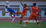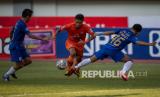 Pesepak bola PSIS Semarang Fredyan Sugiyantoro (kiri) berebut bola dengan pesepak bola Persiraja Banda Aceh Defri Rizki (tengah) dalam pertandingan pekan ketiga Liga 1 2020-2021, di Stadion Wibawa Mukti, Cikarang, Kabupaten Bekasi, Jawa Barat, Sabtu (18/9/2021). (FOTO : Antara/Aditya Pradana Putra)