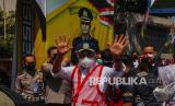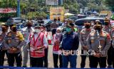 REPUBLIKA.CO.ID, BOGOR -- Menteri Perhubungan Budi Karya Sumadi didampingi Kakorlantas Polri Irjen Pol Istiono , Wakil Bupati Bogor Iwan Setiawan dan Wakapolda Jabar Brigjen Pol Eddy Sumitro memberikan keterangan pers setelah meninjau pelaksanaan ganjil genap jalur Puncak, Kabupaten Bogor, Jawa Barat, Sabtu (18/9/2021).