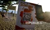 REPUBLIKA.CO.ID, BADUNG -- Wisatawan memindai QR Code saat akan memasuki kawasan wisata Pantai Legian, Badung, Bali, Sabtu (18/9/2021). Pengelola pantai tersebut mengembangkan dan meluncurkan sistem QR Code yang memudahkan wisatawan dalam mengakses aplikasi PeduliLindungi sebagai upaya mewujudkan destinasi pariwisata yang aman selama masa pandemi COVID-19.