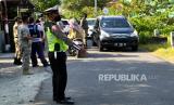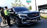 Polisi memeriksa kendaraan saat pemberlakuan aturan ganjil genap menuju kawasan wisata Tebing Breksi, Sleman, Yogyakarta, Ahad (19/9). (FOTO : Wihdan Hidayat / Republika)