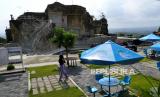 Wisatawan beristirahat di kantin kawasan wisata Tebing Breksi, Sleman, Yogyakarta, Ahad (19/9). (FOTO : Wihdan Hidayat / Republika)
