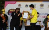 Sustainability Director PT Tirta Fresindo Jaya, Ronald Atmadja (kanan), menerima penghargaan rekor MURI di acara seremoni kegiatan Aksi Bersih-Bersih Serentak Sedunia (World Cleanup Day) di Jakarta, Sabtu (18/9). (FOTO : Dok. Lions Club)