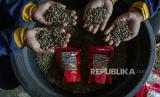 Anggota Kelompok Tani Kopi Melati menyortir biji kopi di rumah produksi kopi Tahulu jenis liberika di Desa Talio Hulu, Kabupaten Pulang Pisau, Kalimantan Tengah, Minggu (19/9/2021). Lembaga Kemitraan bersama Badan Restorasi Gambut (BRG) memberdayakan sejumlah perempuan di desa tersebut untuk memproduksi kopi jenis robusta dan liberika dengan memanfaatkan lahan gambut yang tidur guna meningkatkan perekonomian warga serta menjadi produk unggulan desa. (FOTO : ANTARA/Makna Zaezar)