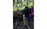 Menteri BUMN Erick Thohir memberikan makanan ke sejumlah kera ekor panjang di obyek wisata Monkey Forest, Ubud, Gianyar, Bali, Senin (20/9/2021). Kunjungan Menteri BUMN ke obyek wisata yang dihuni sekitar 1.200 kera ekor panjang tersebut untuk memberi bantuan pakan hewan kepada pengelola obyek wisata di masa pandemi COVID-19. (FOTO : Antara/Nyoman Hendra Wibowo)