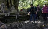 REPUBLIKA.CO.ID,GIANYAR -- Menteri BUMN Erick Thohir memberikan makanan ke sejumlah kera ekor panjang di obyek wisata Monkey Forest, Ubud, Gianyar, Bali, Senin (20/9/2021).