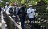 Menteri BUMN Erick Thohir (tengah) bersama Koordinator Staf Khusus Presiden Anak Agung Gede Ngurah Ari Dwipayana (kiri) saat mengunjungi obyek wisata Monkey Forest, Ubud, Gianyar, Bali, Senin (20/9/2021). Kunjungan Menteri BUMN ke obyek wisata yang dihuni sekitar 1.200 kera ekor panjang tersebut untuk memberi bantuan pakan hewan kepada pengelola obyek wisata di masa pandemi COVID-19. (FOTO : Antara/Nyoman Hendra Wibowo)