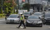 REPUBLIKA.CO.ID, JAKARTA -- Polisi melakukan penindakan terhadap pelanggar lalu lintas saat Operasi Patuh Jaya 2021 di kawasan Bundaran HI, Jakarta, Senin (20/9). Direktorat Lalu Lintas Polda Metro Jaya menggelar Operasi Patuh Jaya 2021 untuk penegakan disiplin berlalu lintas yang berlangsung hingga 3 Oktober 2021.