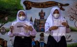 Sejumlah pelajar menunjukkan sertifikat vaksinasi Covid-19 usai disuntik vaksin Covid-19 di SMPN 7 Bandung, Jalan Ambon, Kota Bandung, Selasa (21/9). Pemerintah Kota Bandung menyatakan program vaksinasi Covid-19 dosis pertama bagi pelajar di Kota Bandung telah mencapai 76 persen dan dosis kedua mencapai 50 persen. Foto: Republika/Abdan Syakura (FOTO : REPUBLIKA/ABDAN SYAKURA)