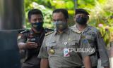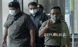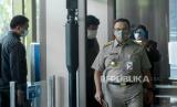 Gubernur DKI Jakarta Anies Baswedan tiba di Gedung Merah Putih KPK di Jakarta, Selasa (21/9). Anies diperiksa KPK sebagai saksi atas kasus dugaan korupsi pengadaan lahan di Munjul, Kelurahan Pondok Ranggon, Kecamatan Cipayung, Jakarta Timur tahun 2019 dengan tersangka Direktur Utama Perusahaan Umum Daerah Pembangunan Sarana Jaya, Yoory Corneles Pinontoan. (FOTO : Republika/Thoudy Badai)