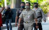 Gubernur DKI Jakarta Anies Baswedan tiba di Gedung Merah Putih KPK di Jakarta, Selasa (21/9). Anies diperiksa KPK sebagai saksi atas kasus dugaan korupsi pengadaan lahan di Munjul, Kelurahan Pondok Ranggon, Kecamatan Cipayung, Jakarta Timur tahun 2019 dengan tersangka Direktur Utama Perusahaan Umum Daerah Pembangunan Sarana Jaya, Yoory Corneles Pinontoan.Republika/Thoudy Badai (FOTO : Republika/Thoudy Badai)