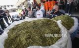 REPUBLIKA.CO.ID,BOGOR -- Barang bukti tembakau sintetis ditunjukan kepada media saat rilis pengungkapan industri rumahan pengolahan narkoba di Polres Bogor, Kabupaten Bogor, Jawa Barat, Selasa (21/9/2021).