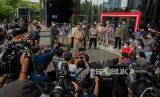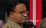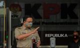 Gubernur DKI Jakarta Anies Baswedan menjawab pertanyaan wartawan usai menjalani pemeriksaan di Gedung Merah Putih KPK di Jakarta, Selasa (21/9). Anies diperiksa selama 5 jam dengan sembilan pertanyaan dari penyidik KPK sebagai saksi atas kasus dugaan korupsi pengadaan lahan di Munjul, Kelurahan Pondok Ranggon, Kecamatan Cipayung, Jakarta Timur tahun 2019 dengan tersangka Direktur Utama Perusahaan Umum Daerah Pembangunan Sarana Jaya, Yoory Corneles Pinontoan.Republika/Thoudy Badai (FOTO : Republika/Thoudy Badai)
