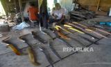 REPUBLIKA.CO.ID, ACEH BESAR -- Perajin menyelesaikan pembuatan senjata tradisional rencong Aceh di rumah produksi pandai besi, Desa Baet Masjid, Kecamatan Suka Makmur, Kabupaten Aceh Besar, Aceh, Rabu (22/9/2021). Menurut perajin, selama pandemi COVID-19 permintaan senjata tradisional rencong Aceh menurun dan hanya di produksi jika ada permintaan masyarakat sebagai cenderamata dengan harga jual Rp150 ribu hingga Rp450 ribu per buah tergantung jenis,ukuran serta bahan bakunya.