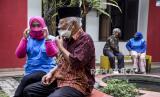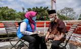 REPUBLIKA.CO.ID,BANDUNG -- Relawan pendamping berbincang dengan warga lanjut usia (Lansia) saat Pembukaan Sekolah Lansia di Kantor PMI Kota Bandung, Jalan Aceh, Kota Bandung, Kamis (23/9).