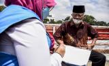 Relawan pendamping mengisi data diri warga lanjut usia (Lansia) saat Pembukaan Sekolah Lansia di Kantor PMI Kota Bandung, Jalan Aceh, Kota Bandung, Kamis (23/9). Program sekolah bagi lansia yang rencananya akan digelar di seluruh kecamatan di Kota Bandung tersebut bertujuan untuk memberikan pendidikan dan pengetahuan terhadap perilaku psikologis serta kesehatan jasmani bagi warga lansia sebagai implementasi dari Indonesia Ramah Lansia. (FOTO : REPUBLIKA/ABDAN SYAKURA)