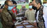 REPUBLIKA.CO.ID, KUPANG -- Kepala Balai Besar Konservasi Sumber Daya Alam (BBKSDA) NTT Arief Mahmud (kanan) berbincang-bincang dengan seorang dokter hewan ketika melihat seekor kura-kura leher ular (Chelonida mccordi) atau yang dikenal dengan sebutan Kura-Kura Rote saat tiba di lokasi Karantina milik BBKSDA NTT di Kota Kupang, NTT, Kamis (23/9/2021).