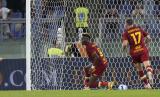 Pemain Roma Lorenzo Pellegrini melakukan selebrasi setelah ia mencetak gol ketiga timnya dalam pertandingan sepak bola grup C Liga Konferensi Eropa antara Roma dan CSKA Sofia, di Stadion Olimpiade Roma, Kamis, 16 September 2021. (FOTO : AP/Andrew Medichini)