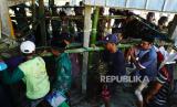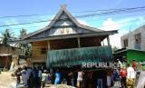 REPUBLIKA.CO.ID,MAMUJU -- Warga bergotong royong memindahkan rumah panggung di Desa Bunde, Mamuju, Sulawesi Barat, Jumat (24/9/2021). '