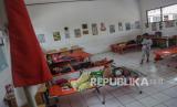 Warga korban banjir beristirahat di posko darurat pengungsian SD Negeri 1 Langkai, Palangkaraya, Kalimantan Tengah, Jumat (24/9/2021). BPBD Kota Palangkaraya mencatat sebanyak 3.856 KK atau 9.907 jiwa terdampak banjir dan kurang lebih 35 jiwa terpaksa mengungsi akibat meluasnya luapan Sungai Kahayan dan Sungai Rungan yang belum surut dalam seminggu terakhir. (FOTO : Antara/Makna Zaezar)