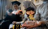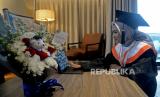REPUBLIKA.CO.ID,JAKARTA -- Wisudawati Annisa Bunga Fitri didampingi keluarganya mengikuti wisuda secara online Universitas Sahid di Jakarta, Sabtu (25/9).