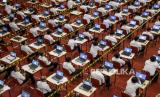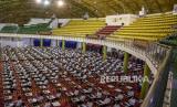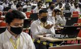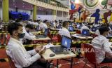 Peserta mengikuti ujian Seleksi Kompetensi Dasar (SKD) Calon Pegawai Negeri Sipil (CPNS) di Gedung SOR Arcamanik, Jalan Pacuan Kuda, Kota Bandung, Senin (27/9). Pemerintah Kota Bandung membuka 3.523 formasi dalam penerimaan Calon Pegawai Negeri Sipil (CPNS) dan Pegawai Pemerintah dengan Perjanjian Kerja (PPPK) tahun 2021. Formasi tersebut terbagi dua yakni 57 formasi untuk CPNS dan 3.466 formasi untuk penerimaan PPPK. Republika/Abdan Syakura (FOTO : REPUBLIKA/ABDAN SYAKURA)