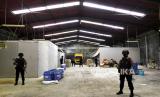 Gudang tempat pabrik pembuatan obat keras ilegal saat pengungkapan mega cland obat keras dan peredarannya di Kasihan, Bantul, Yogyakarta, Senin (27/9). Mabes Polri berhasil mengungkap pabrik obat keras ilegal dan jaringan peredaran DIY-Jabar-Jakarta-Jaktim-Kalsel di Yogyakarta. Sebanyak lebih dari 30 juta butir obat disita dari penggerebekan ini. Pabrik ini memiliki kapasitas produksi 2 juta per hari. Untuk sementara 13 tersangka diamankan aparat dari beberapa lokasi yang berbeda. Obat-obatan yang dibuat disini diantaranya Hexymer, Trihex, DMP, Double L, Irghapan. (FOTO : Wihdan Hidayat / Republika)