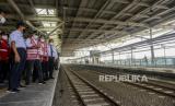 REPUBLIKA.CO.ID, JAKARTA -- Menteri Perhubungan Budi Karya Sumadi (tengah) saat meninjau Stasiun Manggarai di Jakarta, Ahad (26/9). Jalur layang Stasiun Manggarai telah beroperasi yang terdiri dari empat peron bagi penumpang kereta relasi tujuan Jakarta-Bogor.