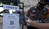 REPUBLIKA.CO.ID, KUTA -- Wisatawan memindai QR Code dengan aplikasi PeduliLindungi sebelum memasuki kawasan wisata Pantai Kuta, Badung, Bali, Minggu (26/9/2021). Pengelola Daya Tarik Wisata (DTW) Pantai Kuta mulai memberlakukan penerapan aplikasi PeduliLindungi bagi seluruh wisatawan untuk mewujudkan aktivitas pariwisata yang aman selama masa pandemi COVID-19.