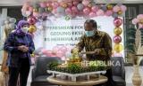 Direktur RS Hermina Arcamanik dr Agus Setiyana (kanan) memotong nasi tumpeng saat peresmian Gedung Poliklinik Eksekutif di RS Hermina Arcamanik, Jalan AH Nasution, Kota Bandung, Senin (27/9). Rumah Sakit (RS) Hermina meresmikan Gedung Poliklinik Eksekutif beserta peralatan medis penunjang yang difungsikan sebagai pusat layanan kesehatan ibu dan anak terpadu guna meningkatkan pelayanan kesehatan masyarakat. (FOTO : REPUBLIKA/ABDAN SYAKURA)