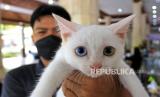 REPUBLIKA.CO.ID, INDRAMAYU -- Warga menunjukkan kucing miliknya usai disuntik vaksin rabies di Pendopo Indramayu, Jawa Barat, Selasa (28/9/2021). Pemerintah setempat bersama dengan Dinas Peternakan dan Kesehatan Hewan mengadakan vaksinasi rabies gratis untuk mencegah adanya penyakit rabies pada hewan peliharaan dalam rangka memperingati World Rabies Day.