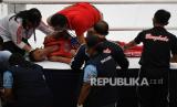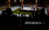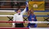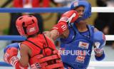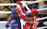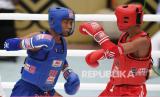 REPUBLIKA.CO.ID, SENTANI -- Atlet Muay Thai bertarung pada babak penyisihan Muay Thai kelas 45 Kg putra PON Papua di GOR STT Gidi, Sentani, Papua, Selasa (28/9/2021). Mereka bertukar serangan jual beli pukulan. Tidak jarang salah satu dari mereka harus terjungkal KO.