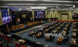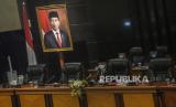REPUBLIKA.CO.ID, JAKARTA -- Suasana Rapat Paripurna Interpelasi Formula E di gedung DPRD DKI Jakarta, Selasa (28/9). Rapat paripurna yang membahas interpelasi terhadap Gubernur DKI Jakarta Anies Baswedan mengenai penyelenggaraan Formula E tersebut ditunda karena tidak memenuhi syarat kuorum dengan hanya dihadiri 32 orang dari 105 orang.