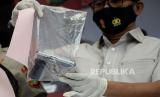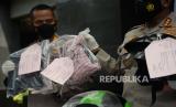 Sejumlah barang bukti diperlihatkan saat rilis pengungkapan kasus pembunuhan di Polda Metro Jaya, Jakarta, Selasa (28/9). Dalam kesempatan tersebut kepolisian memastikan Armand alias Alex korban kasus pembunuhan bukanlah seorang ustadz melainkan paranormal yang membuka praktik pengobatan tradisional. Polisi berhasil menangkap tiga dari empat tersangka pembunuhan serta berhasil mengamankan barang bukti senjata api yang digunakan untuk menembak korban dan pakaian pelaku saat melancarkan aksinya. Prayogi/Republika (FOTO : Prayogi/Republika.)