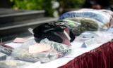 Sejumlah barang bukti diperlihatkan saat rilis pengungkapan kasus pembunuhan di Polda Metro Jaya, Jakarta, Selasa (28/9). Dalam kesempatan tersebut kepolisian memastikan Armand alias Alex korban kasus pembunuhan bukanlah seorang ustadz melainkan paranormal yang membuka praktik pengobatan tradisional. Polisi berhasil menangkap tiga dari empat tersangka pembunuhan serta berhasil mengamankan barang bukti senjata api yang digunakan untuk menembak korban dan pakaian pelaku saat melancarkan aksinya. (FOTO : Prayogi/Republika.)