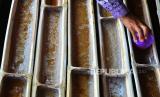 REPUBLIKA.CO.ID,GROBOGAN -- Petani menuangkan air ke klakah atau bilah bambu saat proses produksi garam Jono di Desa Jono, Tawangharjo, Grobogan, Jawa Tengah, Rabu (29/9/2021).