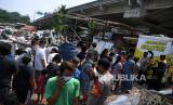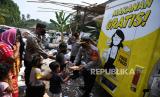 REPUBLIKA.CO.ID, JAKARTA --Anggota Polsek Cilandak membagikan makanan gratis di lapak pemulung, Pondok Labu, Cilandak, Jakarta Selatan, Rabu (29/9/2021). Pembagian makanan gratis bagi warga di lapak pemulung tersebut merupakan salah satu kepedulian Polri di tengah pandemi.