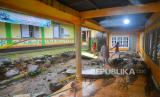 REPUBLIKA.CO.ID, PADANGPARIAMAN -- Anak-anak berjalan melewati reruntuhan pagar yang roboh usai diterjang banjir bandang, di Kuliek, Nagari Sungai Buluah Timur, Kabupaten Padangpariaman, Sumatera Barat, Kamis (30/9/2021).