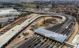 Suasana proyek pembangunan Simpang Susun Cileunyi yang menghubungkan Jalan Tol Purbaleunyi dan Jalan Tol Cisumdawu di Cileunyi, Kabupaten Bandung, Kamis (30/9). Menteri Koordinator Bidang Kemaritiman dan Investasi Luhut Binsar Pandjaitan menyatakan, Proyek Strategis Nasional (PSN) Jalan Tol Cisumdawu yang memiliki panjang 62,01 kilometer tersebut ditargetkan rampung pada awal tahun 2022 mendatang guna menunjang akses masyarakat dari Bandung menuju Bandara Internasional Jawa Barat (BIJB) Kertajati. Foto: Republika/Abdan Syakura (FOTO : REPUBLIKA/ABDAN SYAKURA)
