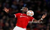 Paul Pogba dari Manchester United menahan bola pada pertandingan sepak bola grup F Liga Champions UEFA antara Manchester United dan Villarreal CF di Manchester, Inggris, Kamis (30/9) dini hari WIB. (FOTO : REUTERS/PHIL NOBLE)