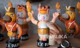 REPUBLIKA.CO.ID, JAYAPURA -- Karyawan membersihkan suvenir maskot PON Papua Kangpho dan Drawa dipusat oleh-oleh Abepura, Kota Jayapura, Papua, Kamis (30/9/2021). Suvenir yang terbuat dari kayu susu (Alstonia scholaris (L.) R.Br.) dan fiberglass tersebut dijual dengan harga Rp300 ribu per buah.