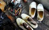 REPUBLIKA.CO.ID, BANTUL -- Perajin mengerjakan pesanan sepatu kulit di sentra kerajinan kulit Manding, Bantul, Yogyakarta, Jumat (1/10). Sejak pandemi Covid-19, perajin sepatu kulit hanya mengandalkan pesanan atau reparasi. Penjualan sepatu kulit terus anjlok hingga hari ini hal ini diperparah penjualan di pasar lokal yang masih sedikit.