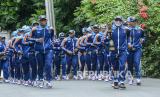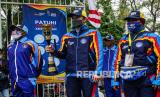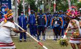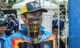 REPUBLIKA.CO.ID, JAYAPURA -- Pesepak bola Boaz Solossa (kedua kanan) membawa api PON Papua saat dikirab di kawasan Kantor Wali Kota Jayapura, Papua, Jumat (1/10/2021). Api PON Papua tiba di Kota Jayapura dan dikirab di pusat kota dan akan dilanjutkan menuju Kabupaten Jayapura.