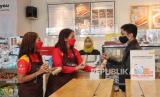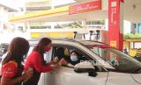 REPUBLIKA.CO.ID, JAKARTA -- Presiden Direktur Shell Indonesia Dian Andyasuri bersama Vice President Network Mobility Shell Indonesia Ingrid Siburian memberikan paket minuman kopi 100% asli Indonesia kepada pelanggan setia Shell yang telah divaksin Covid 19, di SPBU Shell Gatot Subroto Jakarta, Jumat (1/10).