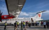 Sejumlah penumpang menaiki pesawat tujuan Kabupaten Poso di Bandara Mutiara Sis Aljufri Palu, Sulawesi Tengah, Jumat (1/10/2021). Setelah sempat ditutup akibat tingginya angka penularan COVID-19, Bandara Kasiguncu di Kabupaten Poso kini dibuka kembali untuk penerbangan komersil. (FOTO : ANTARA//Basri Marzuki)