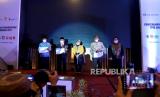 Deputi Bidang Ekonomi Kementerian PPN/Bappenas, Amelia Adininggar Widyasari (tengah), Kepala KPw Bank Indonesia Gorontalo, Budi Widihartanto (kanan), Bupati Bone Bolango, Hamim Pou (kiri), Sekda Kota Gorontalo Ismail Madjid (kedua kiri) dan Asisten Pembangunan dan Ekonomi Setda Provinsi Gorontalo Sutan berfoto bersama pada Tim Pengendali Inflasi Daerah TPID Award 2021 di Kota Gorontalo, Jumat (1/10/2021). TPID Provinsi Gorontalo, Kabupaten Gorontalo dan Bone Bolango meraih TPID Award 2021 untuk regional Sulawesi yang diselenggarakan oleh Bappenas, Bank Indonesia dan Kemenko Perekonomian. (FOTO : ANTARA/Adiwinata Solihin)