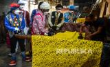 Sejumlah anggota Komunitas Badut Tasikmalaya (Battik) menyaksikan produksi batik cap di rumah produksi Batik Jigi, Setra Kampung Batik, Cigeureung, Kota Tasikmalaya, Jawa Barat, Jumat (1/10/2021). Aksi Komunitas Battik itu dilakukan menjelang Hari Batik Nasional pada 2 Oktober, untuk mendorong kebangkitan pelaku usaha ekonomi kreatif khususnya perajin batik serta mengkampanyekan kecintaan terhadap batik yang diakui UNESCO sebagai warisan budaya.  (FOTO : Antara/Adeng Bustami)