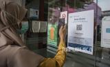 REPUBLIKA.CO.ID, JAKARTA -- Pengunjung menunjukkan layar gawai usai memindai kode batang (QR Code) menggunakan aplikasi PeduliLindungi di pintu masuk Pasar Mayestik, Kebayoran Baru, Jakarta, Jumat (1/10/2021). Pasar Mayestik menjadi salah satu dari enam lokasi pasar rakyat yang ditetapkan oleh Pemerintah sebagai lokasi uji coba penerapan aplikasi PeduliLindungi yang bertujuan untuk memberikan rasa aman dan nyaman bagi pengunjung dari penularan COVID-19. ANTARA FOTO/Aprillio Akbar