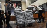REPUBLIKA.CO.ID, JAKARTA -- Polisi mengamankan barang bukti uang usai gelar pengungkapan perkara penipuan dengan skema Bussiness Email Compromise di Gedung Bareskrim Mabes Polri, Jakarta, Jumat (1/10/2021).