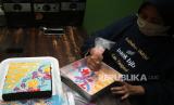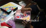 REPUBLIKA.CO.ID, TANGSEL Perajin kue membuat pola batik untuk kue brownies bermotif batik di Pamulang, Tangerang Selatan, Banten, Jumat (1/10/2021). Pada momentum Hari Batik Nasional, permintaan pesanan kue bermotif batik yang dijual Rp75 ribu hingga Rp150 ribu per loyang mengalami peningkatan hingga dua kali lipat dari hari biasa.