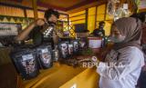REPUBLIKA.CO.ID, PALANGKARAYA -- Pengunjung melihat jenis-jenis kopi saat launching Kopi Meratus di obyek wisata Pagat, Barabai, Kabupaten Hulu Sungai Tengah, Kalimantan Selatan, Jumat (1/10/2021).